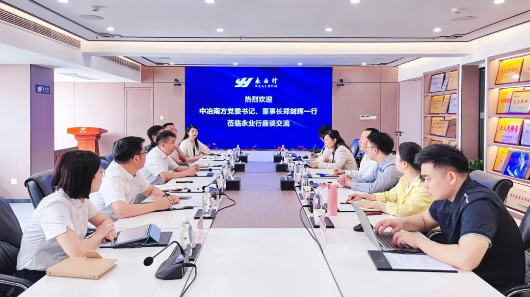 2025年4月17日,中冶南方党委书记、董事长郑剑辉一行莅临永业行,就双方战略合作开展座谈交流。永业行党委书记、董事长潘世炳,高级副总裁文云波等热情接待并参加座谈交流。